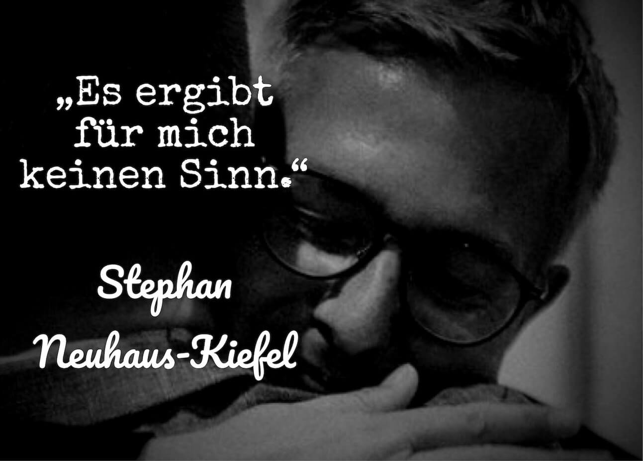 Stephan arbeitet als Trauer- und Hochzeitsredner und ehrenamtlicher Priester für die Alt-Katholische Kirche. In meinem Bekanntenkreis ist er der einzige Trauerredner, den ich kenne. Er spicht darüber, was es bedeutet nach der Flut ganz blockiert zu sein und wie er den Weg aus diesem Zustand findet. Wie wichtig es ist, einige Schritte nicht zu schnell zu gehen – z.B. – das Geschehene zu erklären oder einen Sinn zu finden, wenn es keinen gibt.